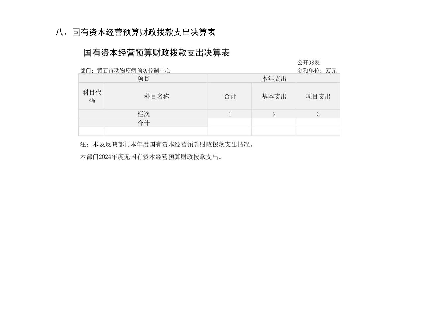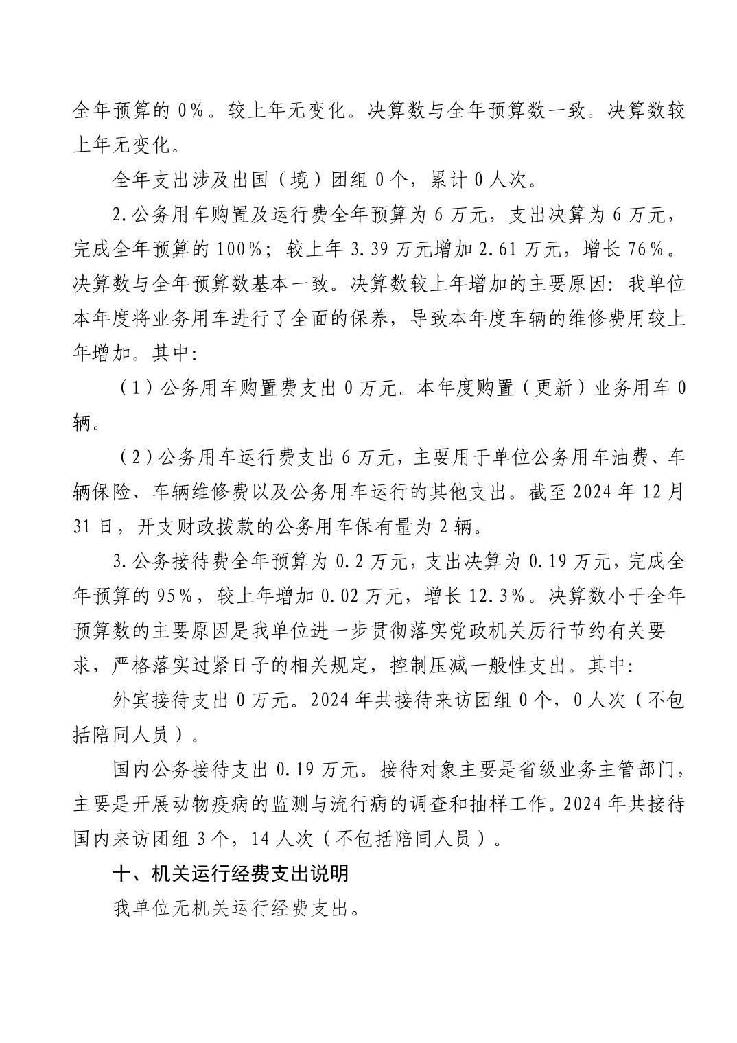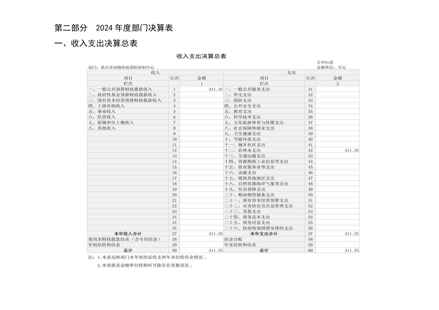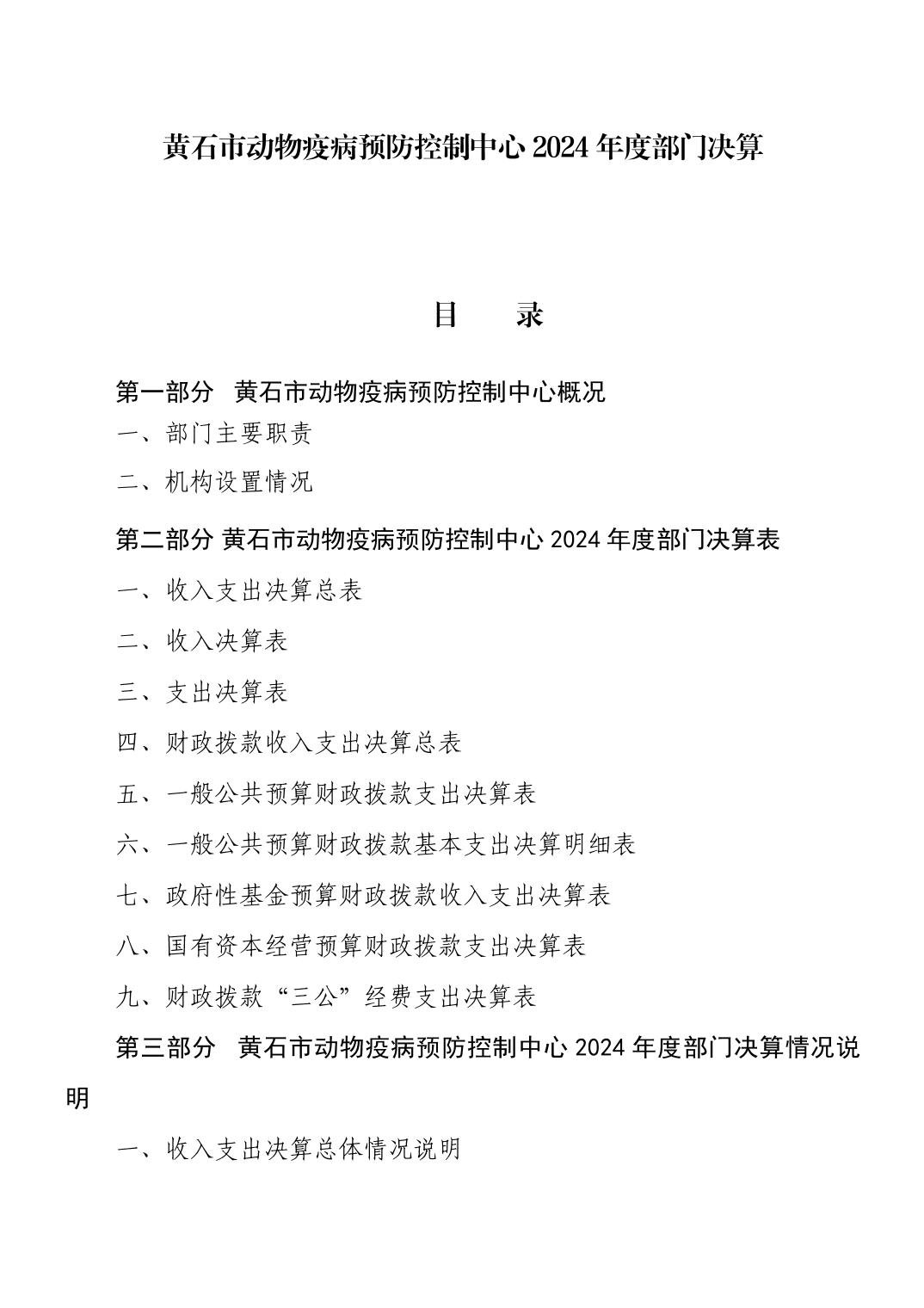 黄石市动物疫病预防控制中心 2024 年度部门决算