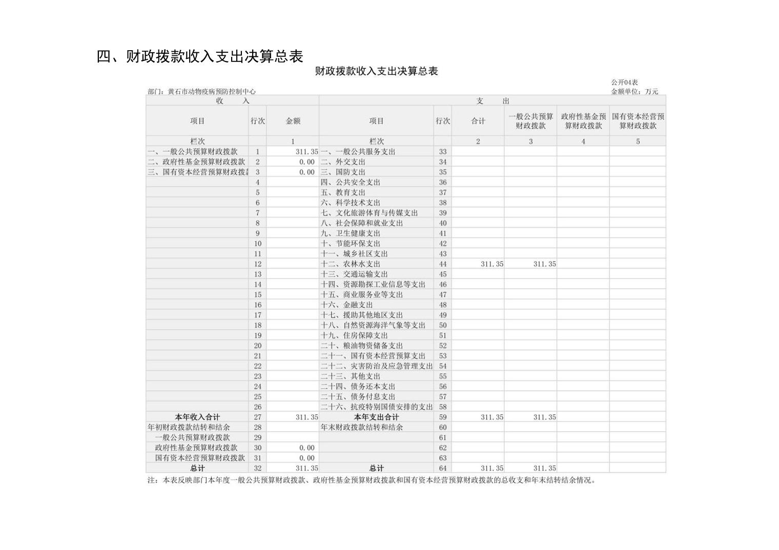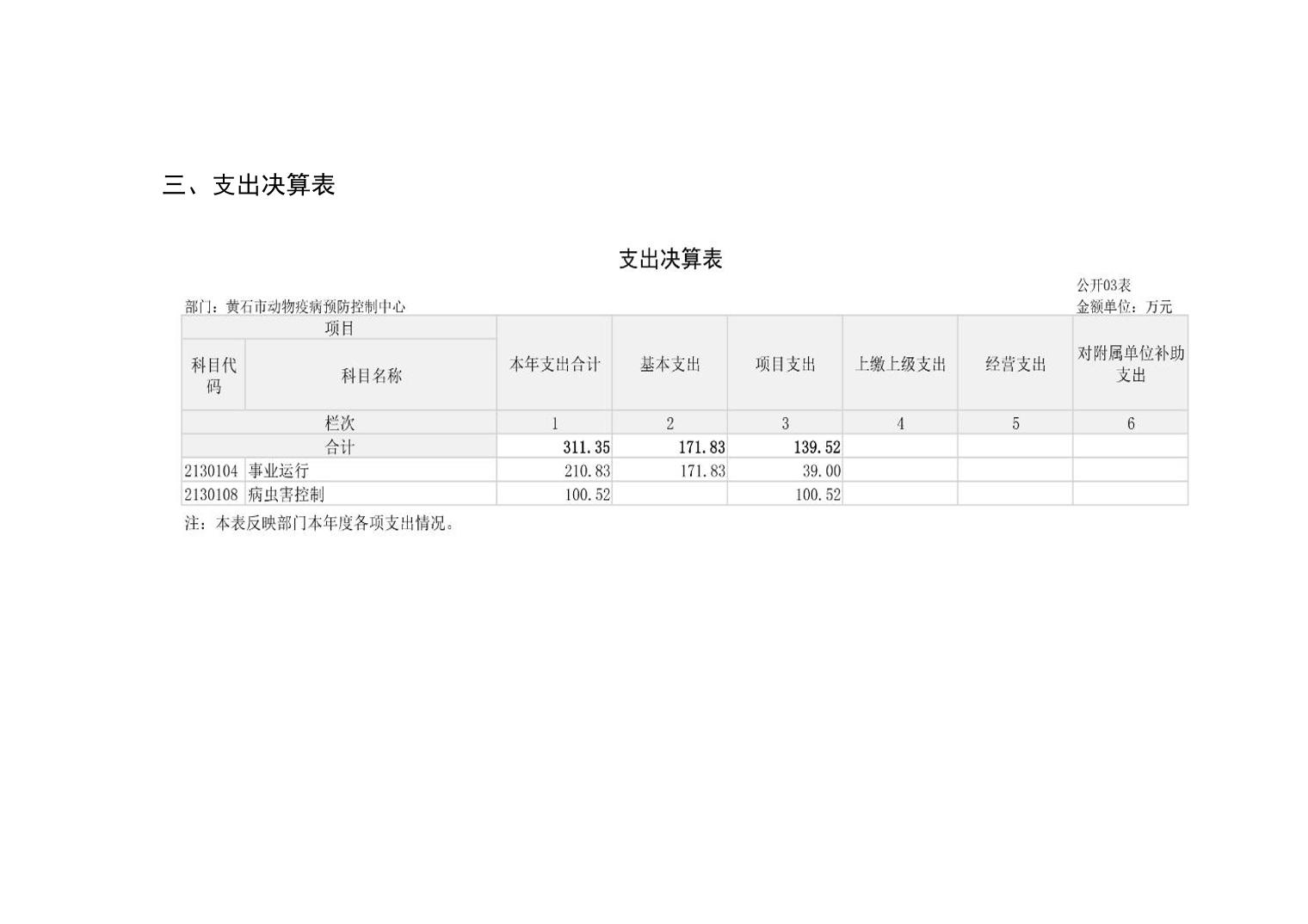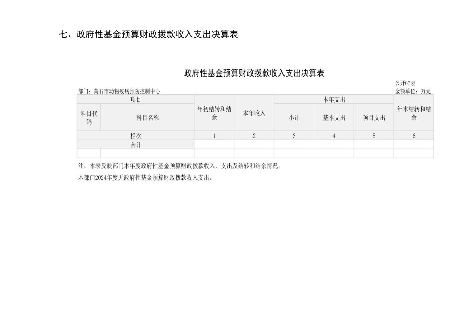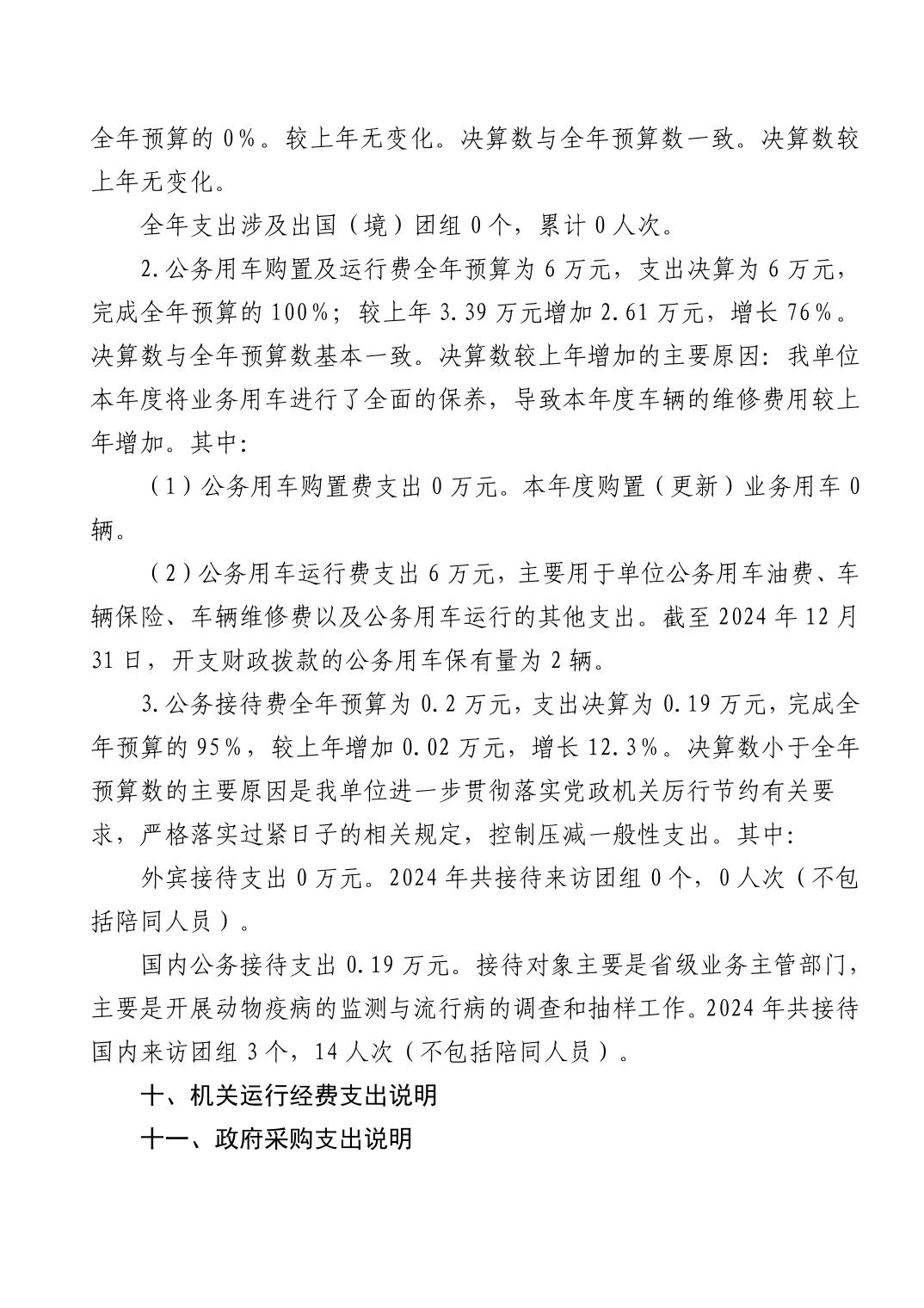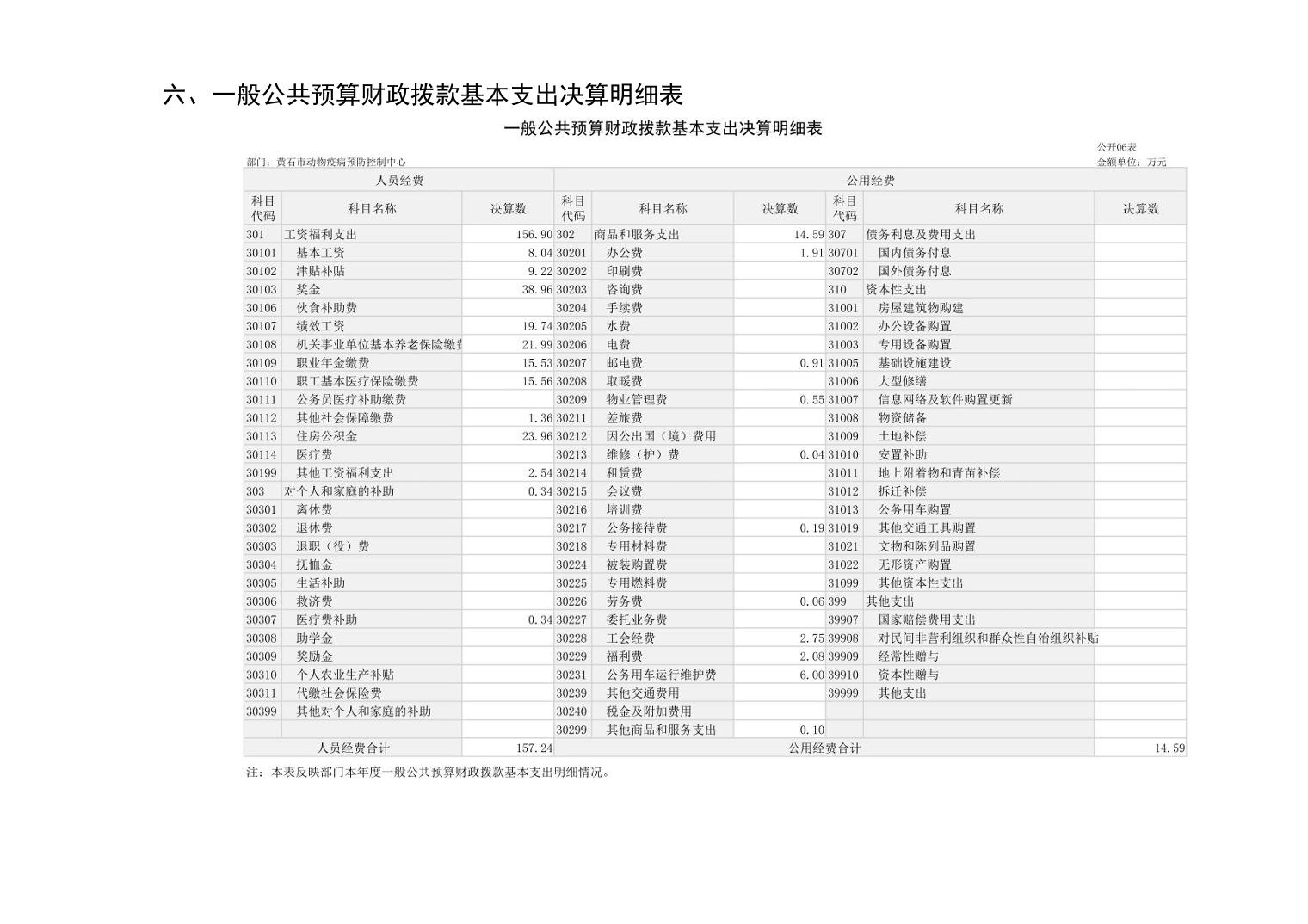 黄石市动物疫病预防控制中心 2024 年度部门决算