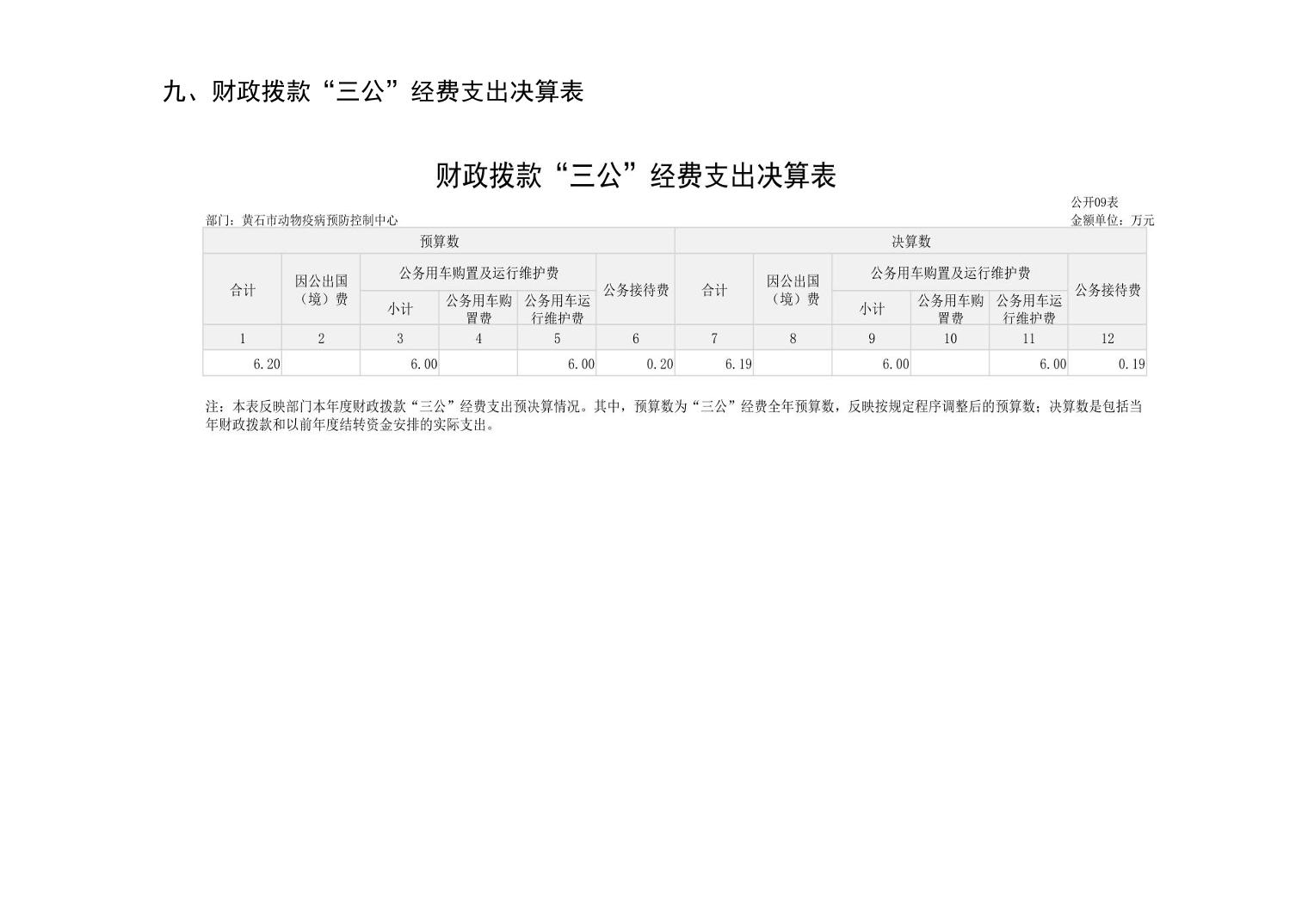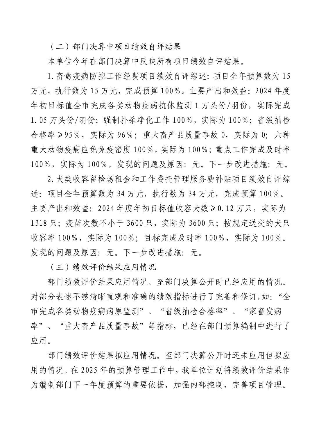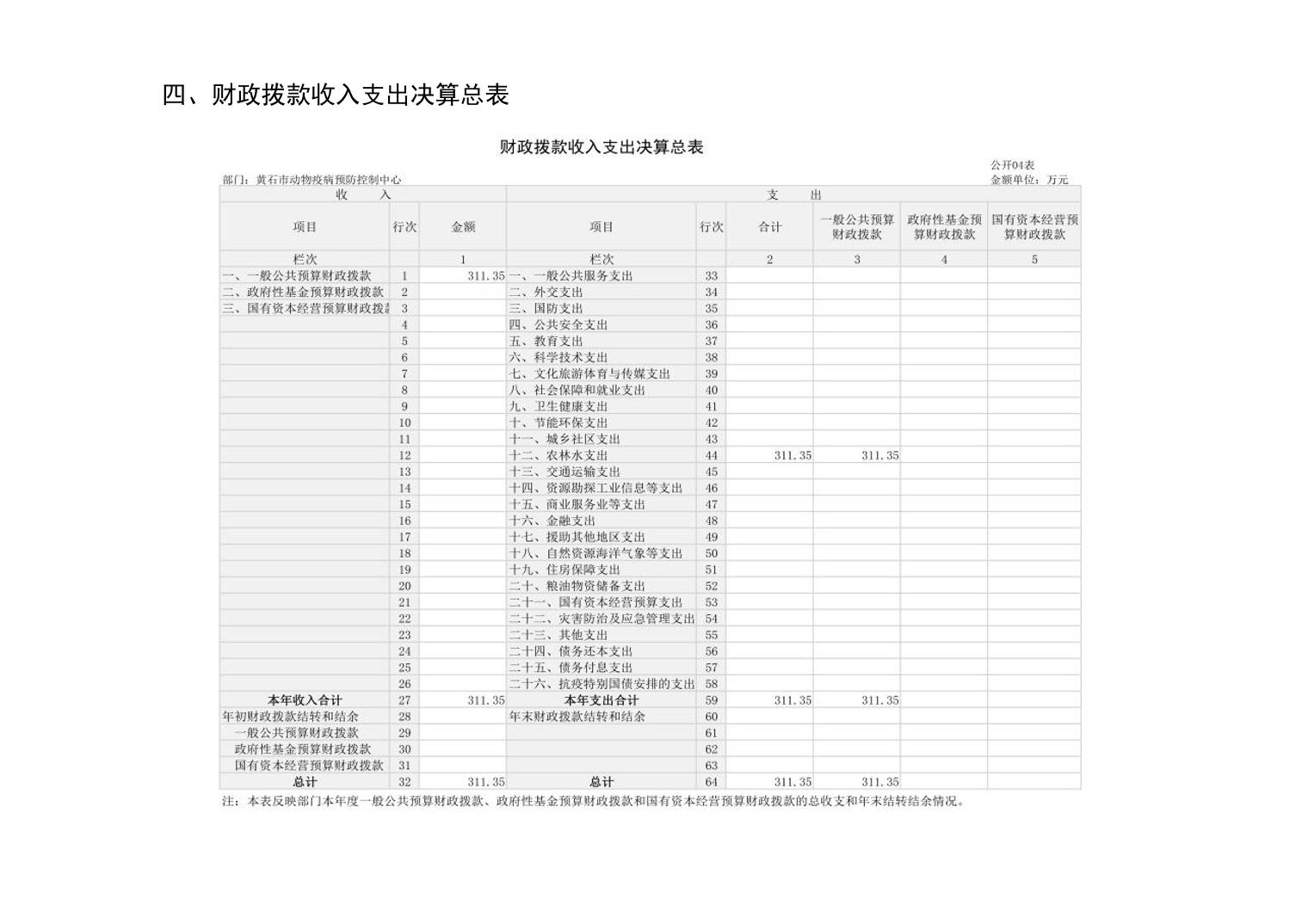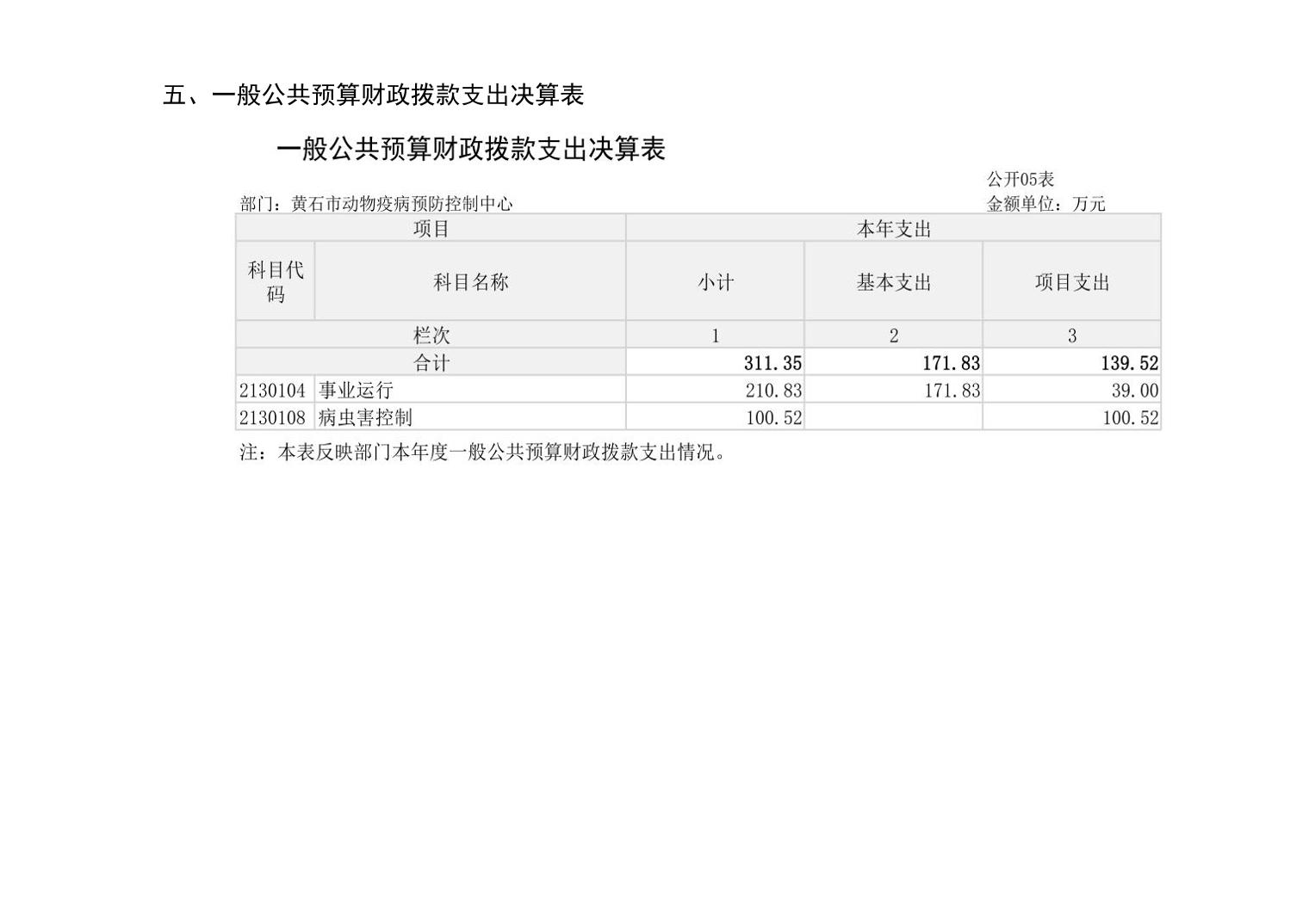 黄石市动物疫病预防控制中心 2024 年度部门决算