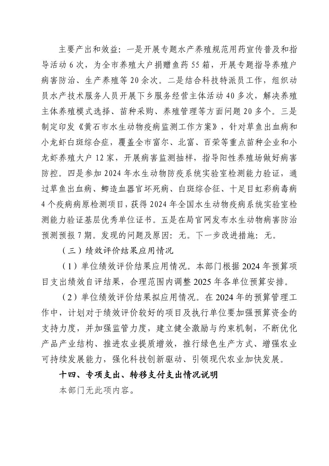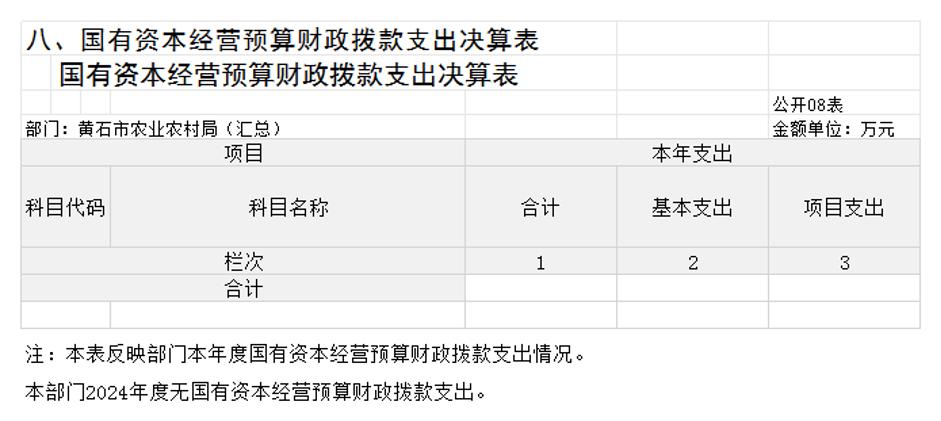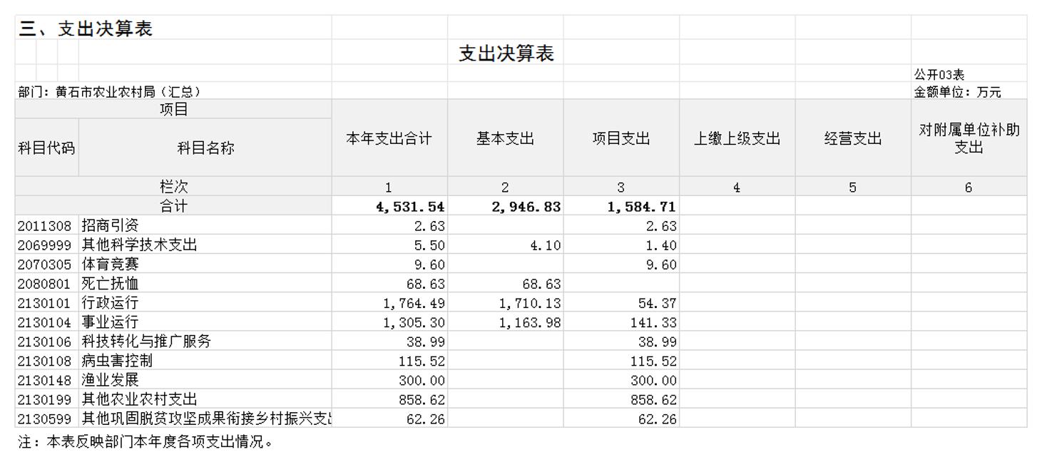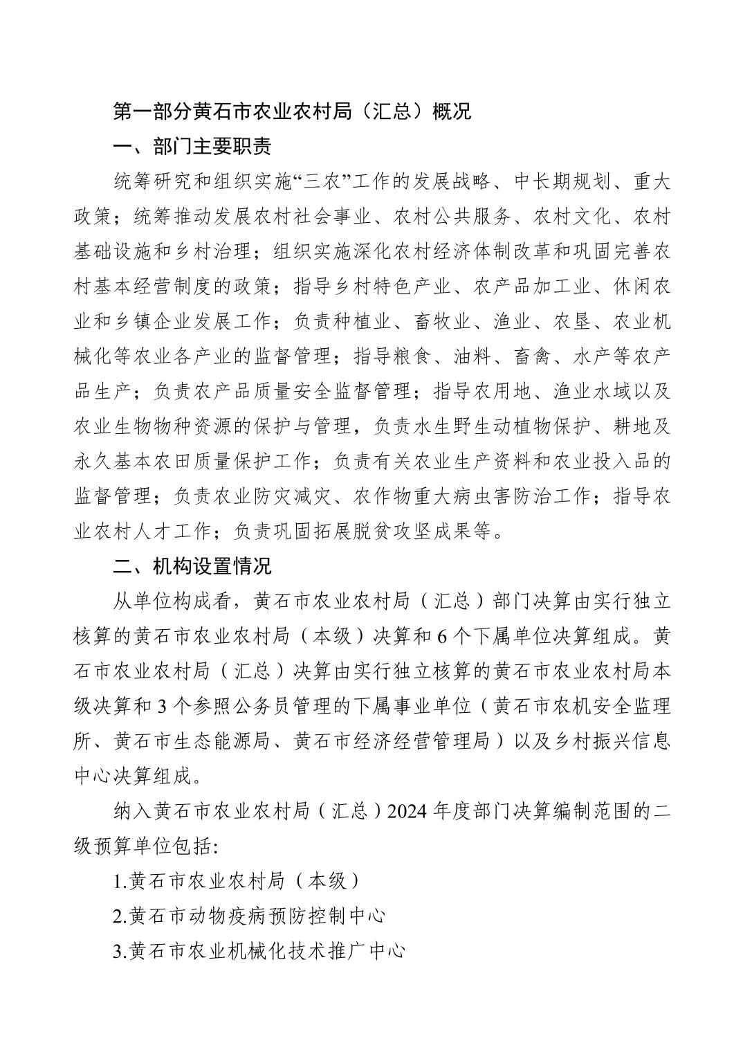 黄石市农业农村局汇总2024年度单位决算公开