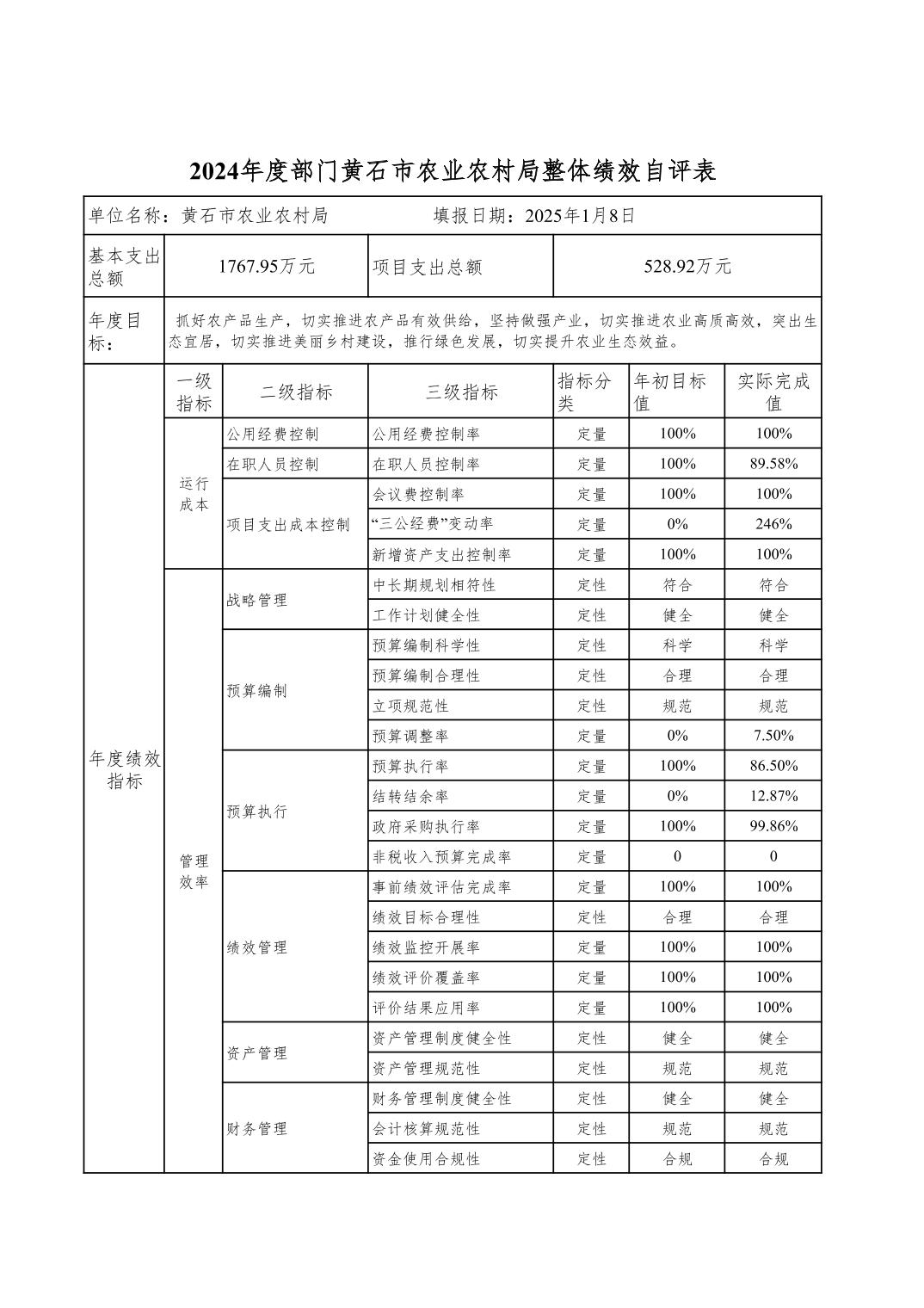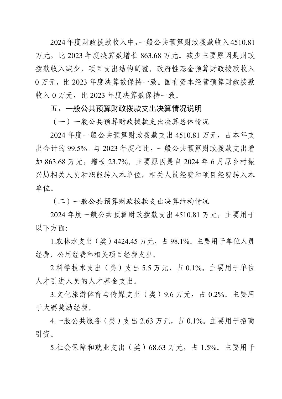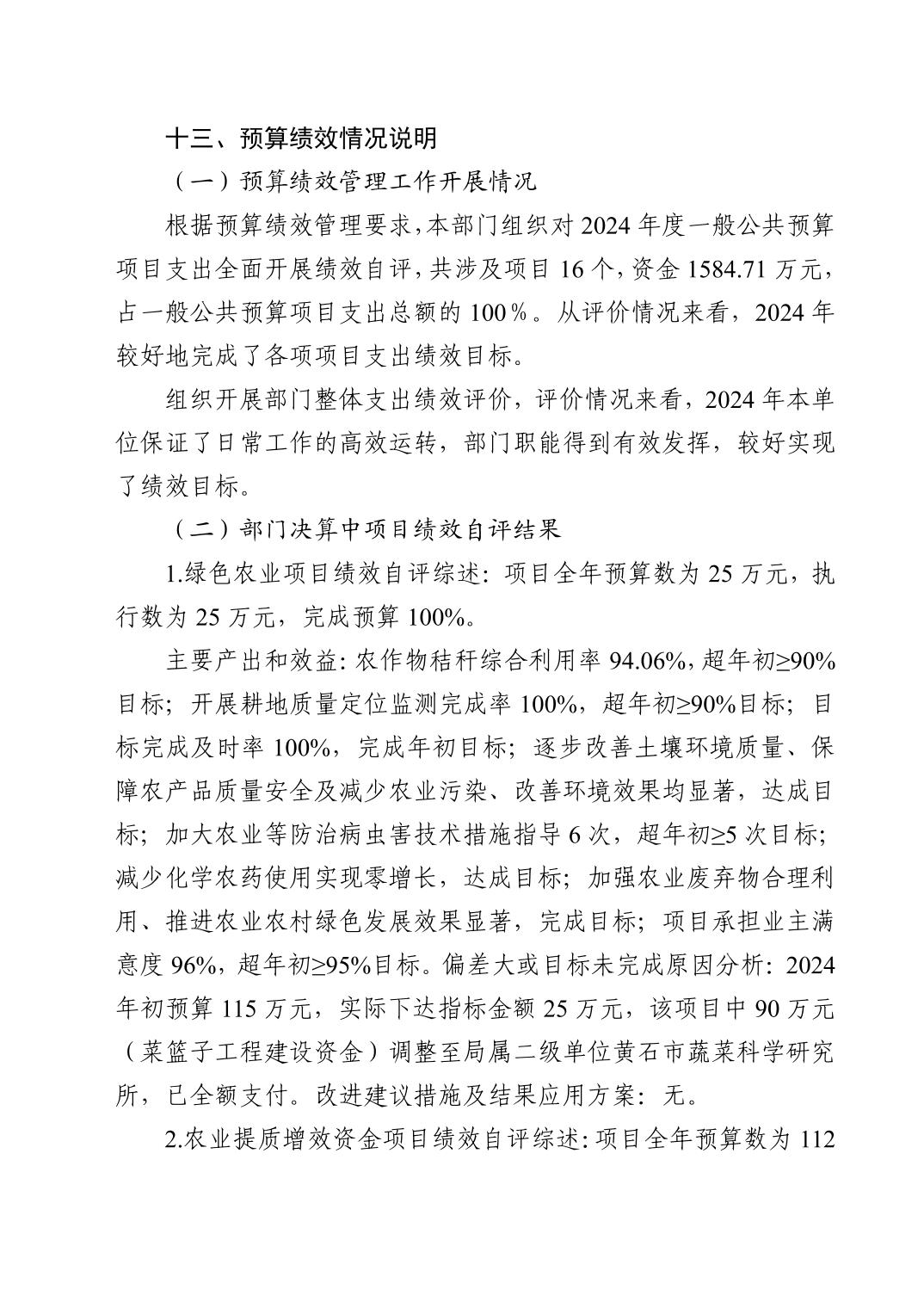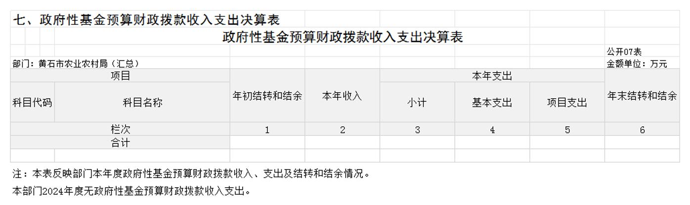 黄石市农业农村局汇总2024年度单位决算公开