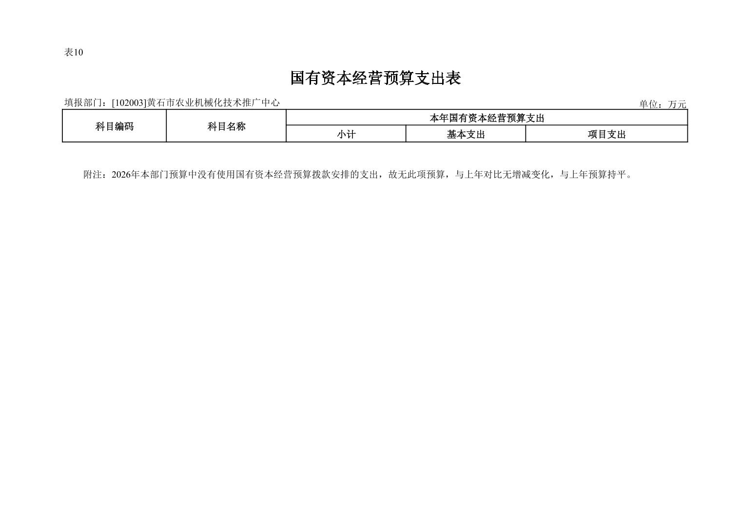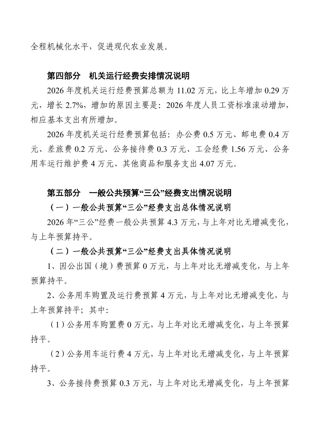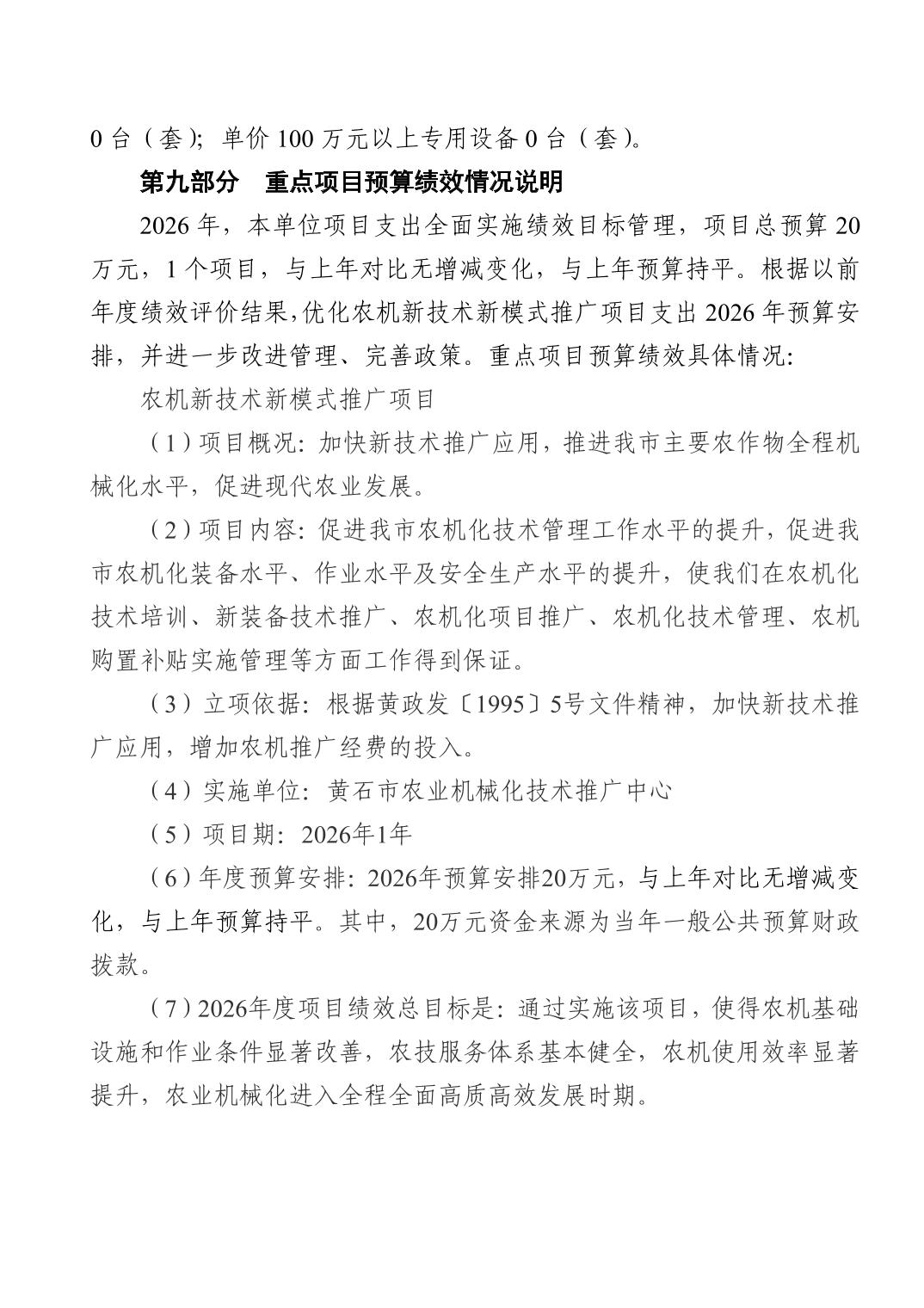 2026 年度黄石市农业机械化技术推广中心 部门预算公开情况说明