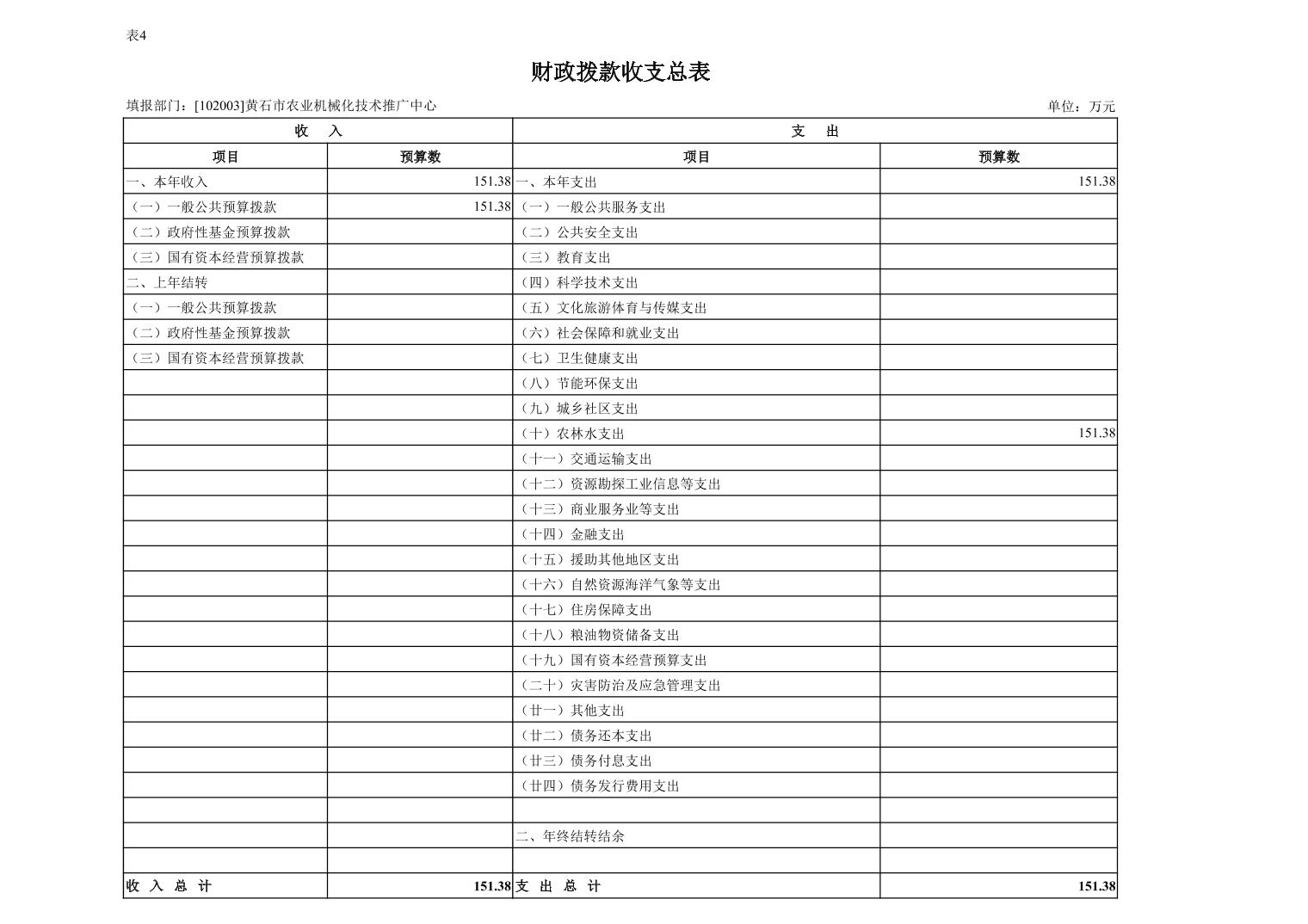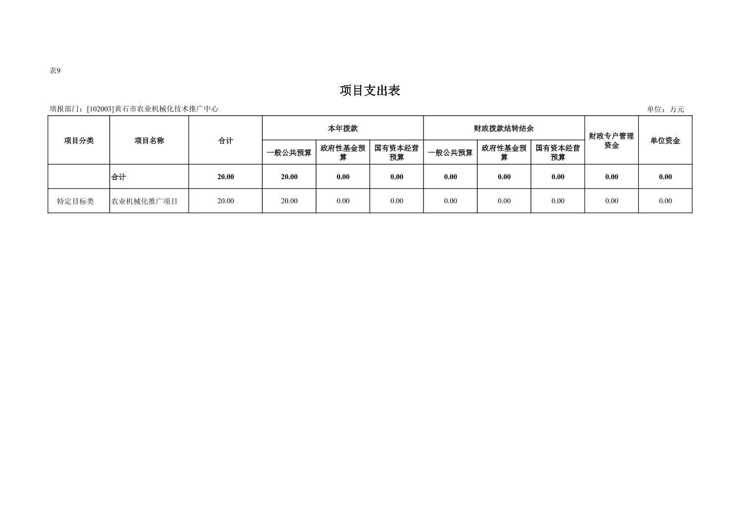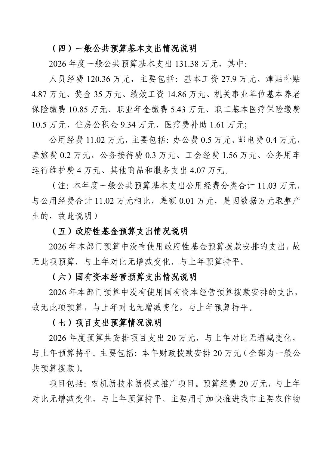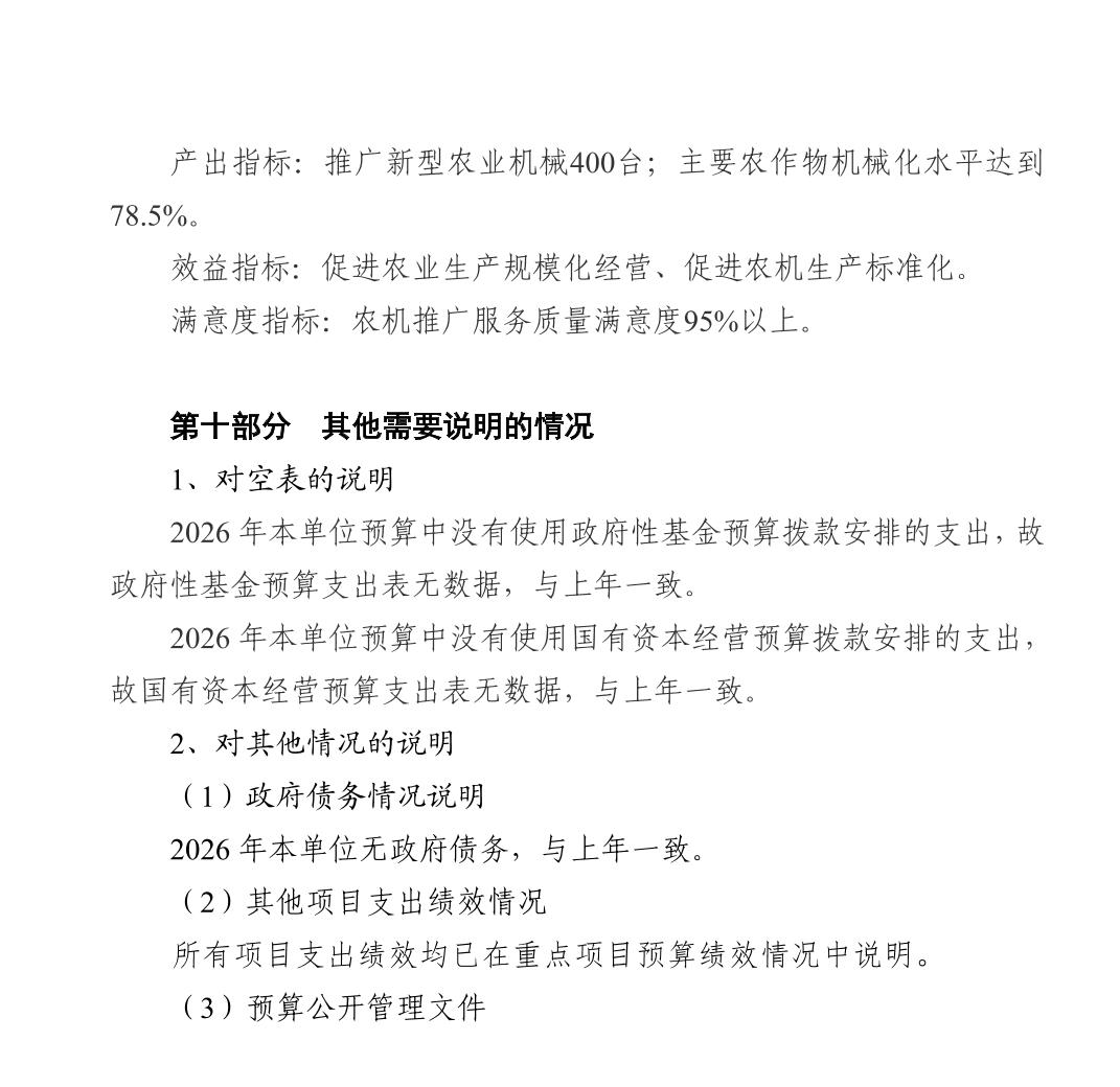 2026 年度黄石市农业机械化技术推广中心 部门预算公开情况说明
