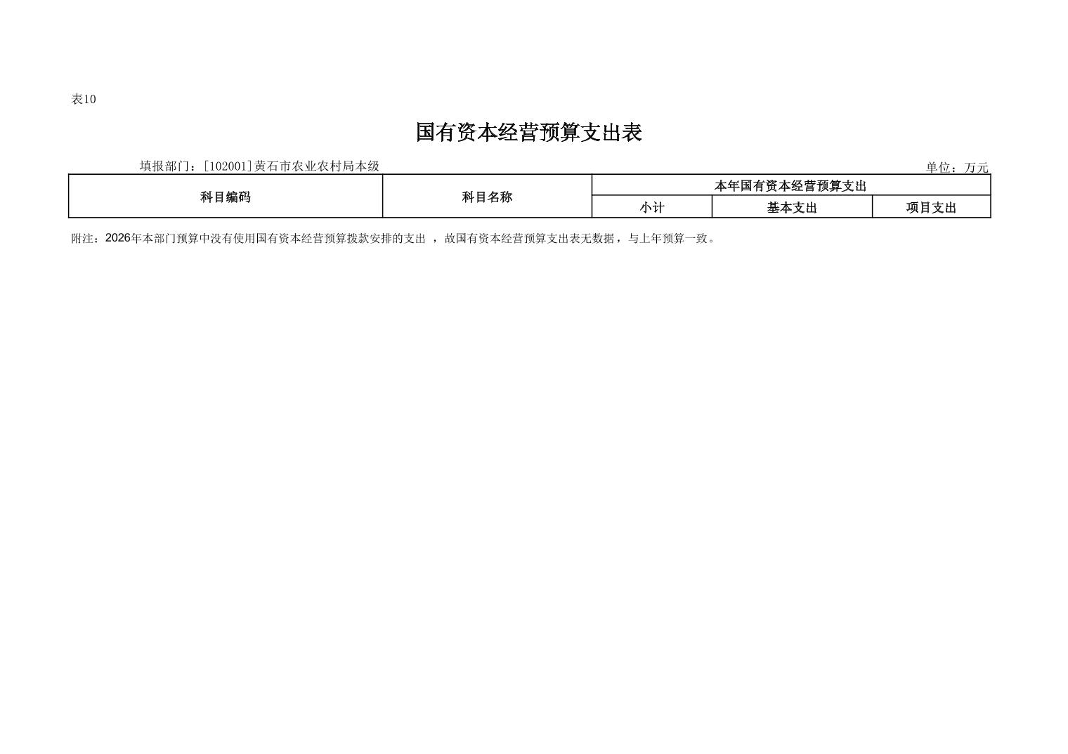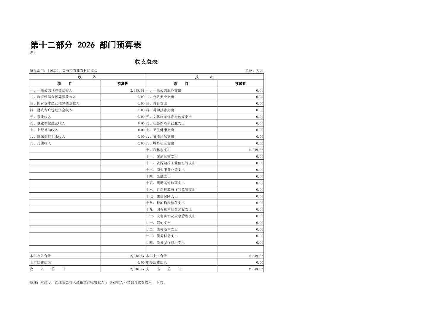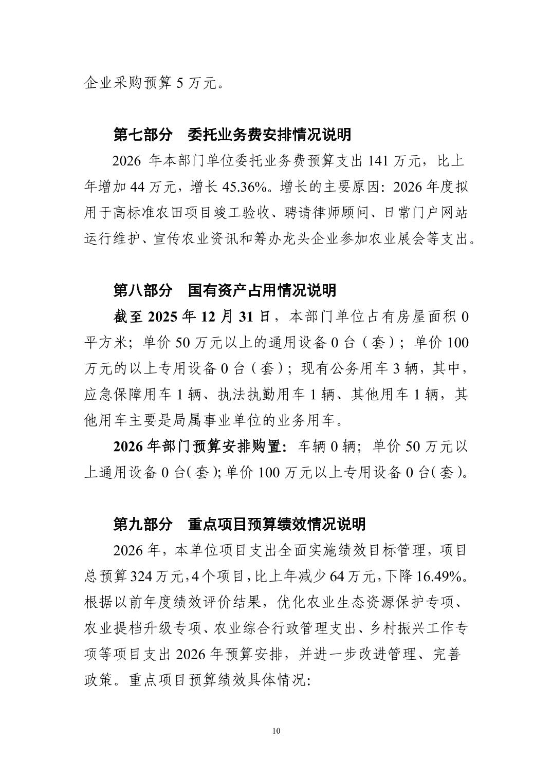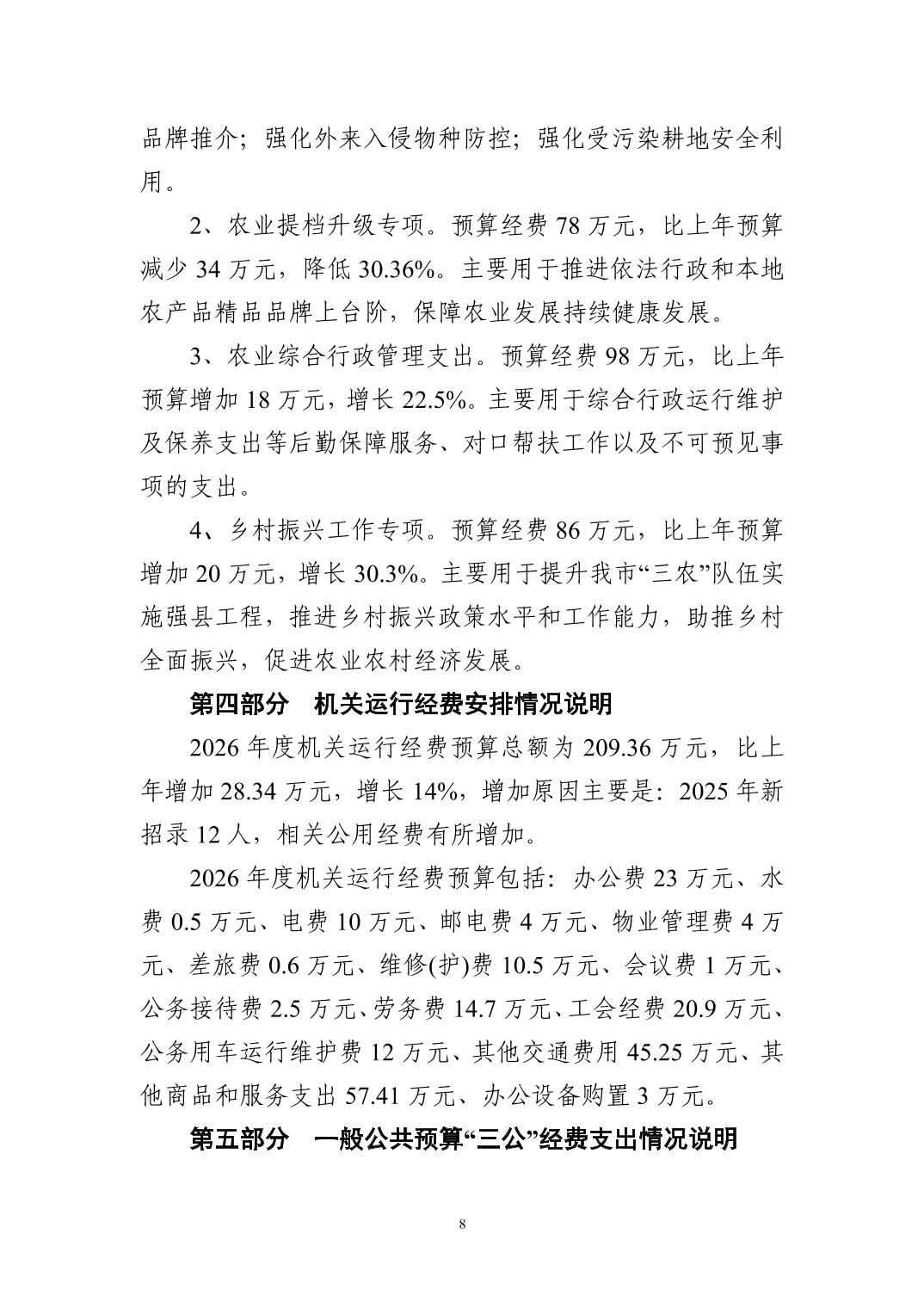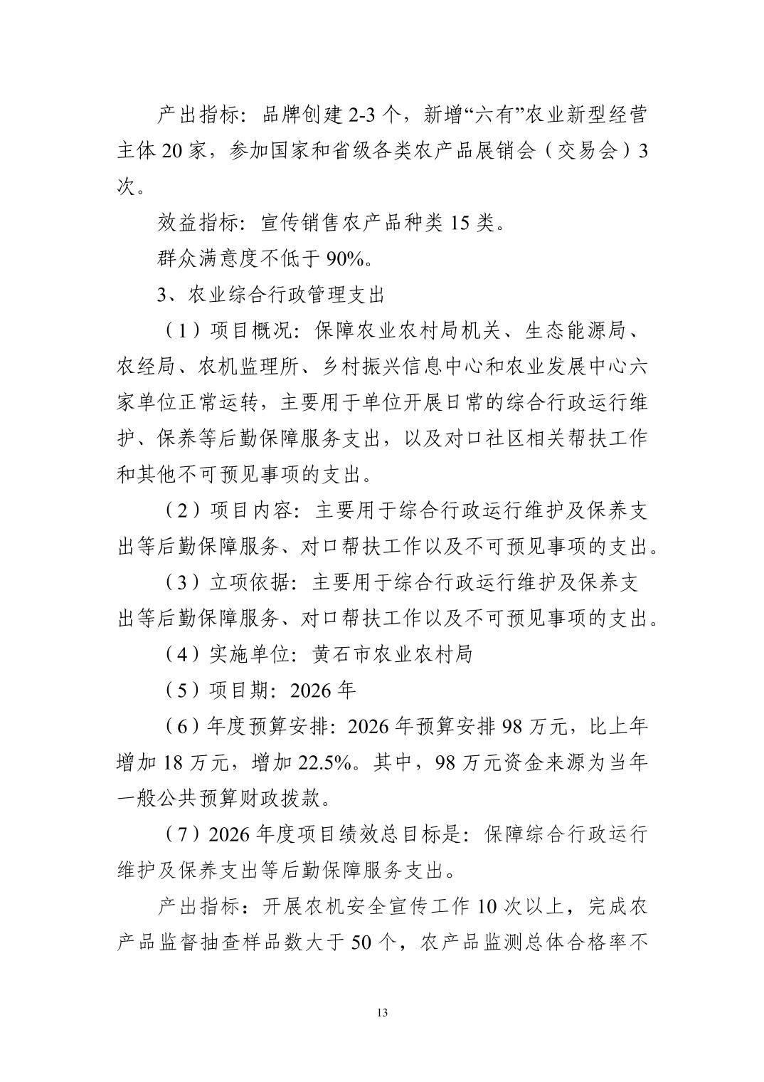 2026 年度黄石市农业农村局(本级) 部门预算公开情况说明