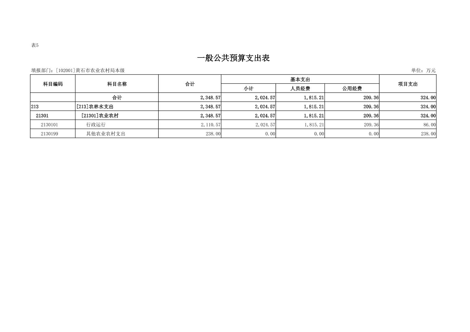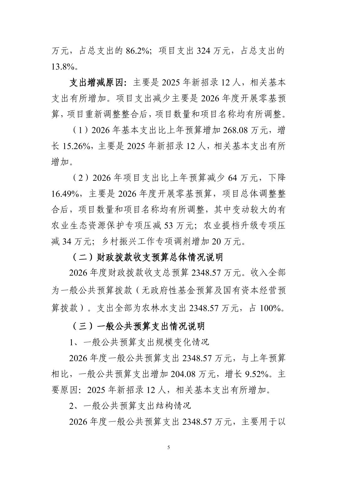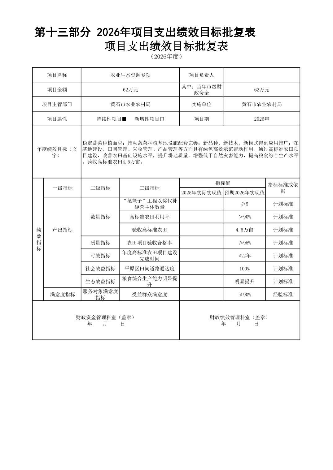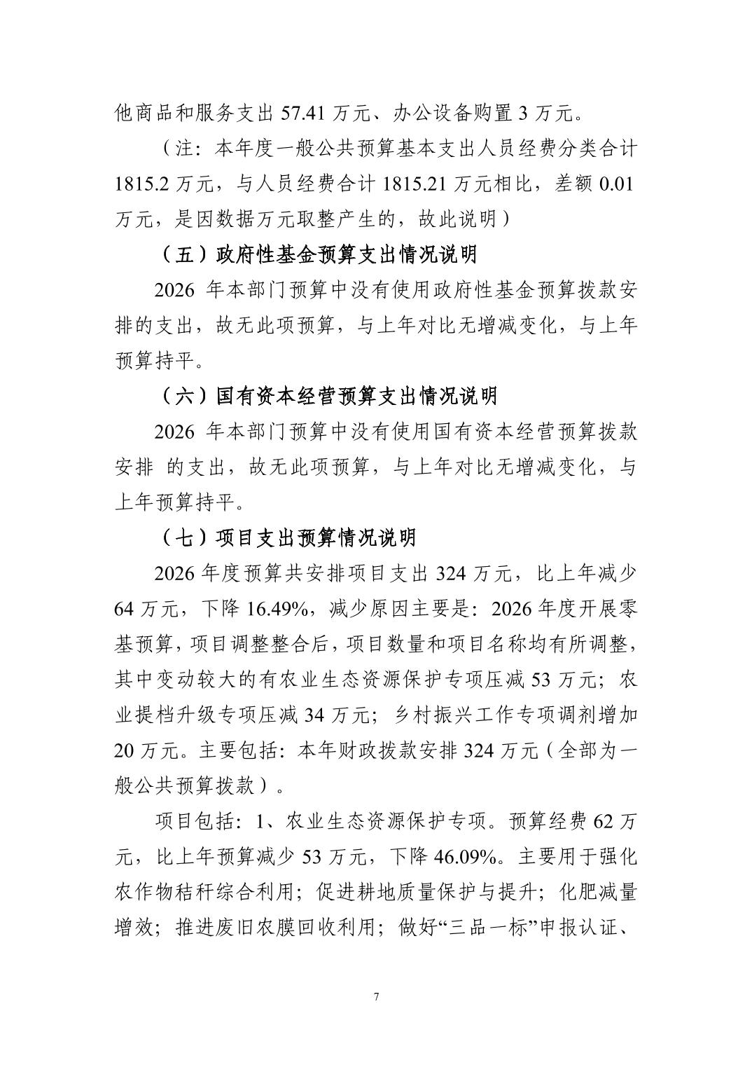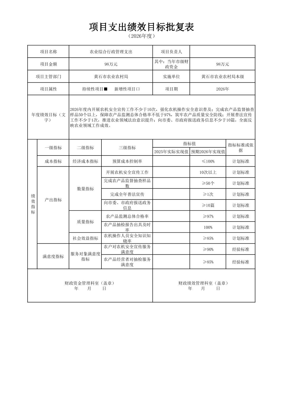 2026 年度黄石市农业农村局(本级) 部门预算公开情况说明
