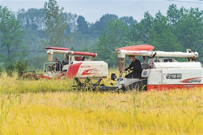 连日来,伴随着收割机的轰鸣声,我市各乡镇田间地头一片繁忙。农民抢收快收,确保颗粒归仓,广袤的大地上响彻着秋收进行曲……图为农机师在黄石临空经济区·还地桥镇南石村收割水稻。