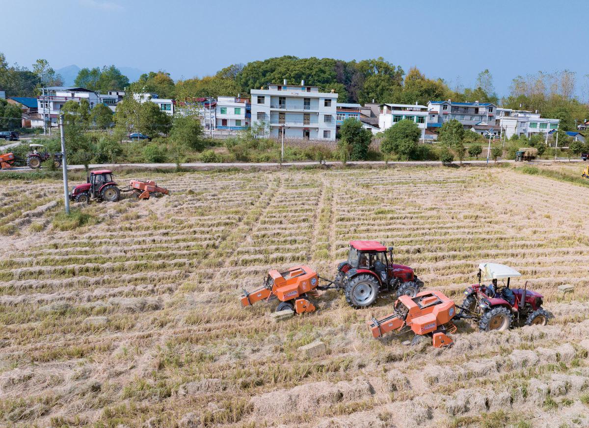9日,在阳新县浮屠镇彭家墩村,多台秸秆打捆机在稻田里作业。今年阳新全县种植中晚稻35万亩,计划打捆回收20万亩,粉碎还田15万亩,回收秸秆10万吨。近年来,阳新探索并加快农作物秸秆离田利用向“能源化、肥料化、饲料化、基料化、原料化”发展,秸秆综合利用率达93%以上。